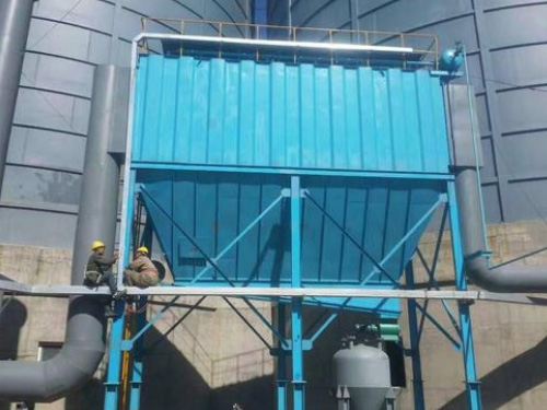 YMD-I型低壓噴吹脈沖除塵器由濾袋組件、導(dǎo)流裝置、脈沖噴吹系統(tǒng)、除灰系統(tǒng)、控制系統(tǒng)、離線保護(hù)系統(tǒng)、箱體等組成。脈沖布袋收塵器含塵氣體由導(dǎo)流管進(jìn)入各單元室,在導(dǎo)流裝置的作用下,大顆粒粉塵被分離后直接落入灰斗,其余粉塵隨氣流均勻進(jìn)入各倉室過濾區(qū),過濾后的潔凈氣體透過濾袋經(jīng)上箱體、提升閥排風(fēng)管排出。當(dāng)過濾袋表面粉塵達(dá)到   厚度時(shí),濾袋內(nèi)外的壓差就會逐漸增加;當(dāng)壓差達(dá)到設(shè)定值(由壓差儀控制時(shí)久來自貯氣罐的空氣就會迫使脈沖閥的膜片自動打開,輸送   量的空氣,通過風(fēng)管由噴嘴噴入濾袋內(nèi),進(jìn)行在線自動反吹清灰,抖落濾袋上的粉塵。落入灰斗中的粉塵經(jīng)卸灰閥排出后,利用輸灰系統(tǒng)送出。