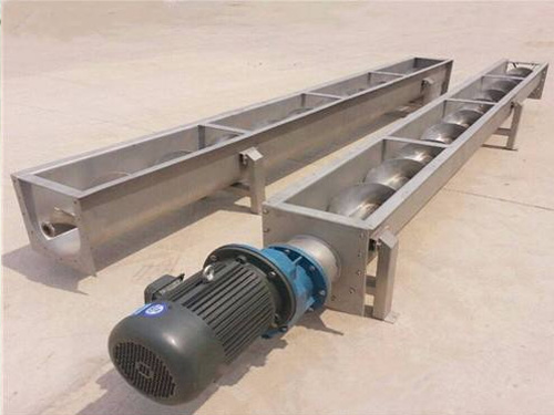 一般情況下,出廠總裝時將螺旋輸送機中間節(jié)按長度長短依次排列,長的中間節(jié)靠近頭節(jié),相同長度的中間節(jié)則挨在一起,如果有特殊要求,則在訂貨時給出排列順序。在螺旋輸送機頭節(jié)內裝有支推軸承承受軸向力,在中間節(jié)和尾節(jié)內裝有用軸承支承螺旋軸,此外,在螺旋輸送機尾節(jié)內還裝有可軸向移動的徑向軸承以補償螺旋軸長度的誤差和適應溫度的變化。螺旋輸送機螺旋面的形式有實體螺旋(S制法)和帶式螺旋(D制法)兩種。各螺旋軸之間采用法蘭式聯(lián)接, 保證了聯(lián)接軸的互換性,便于維修。螺旋輸送機機蓋為瓦片式并用蓋扣夾緊在機殼上,若需改進密封性能,用戶可自行在機蓋與機殼間加防水粗帆布。 螺旋輸送機進、出料裝置有進料口,方型出料口,手推式出料口,齒條式出料口四種,由用戶在使用現(xiàn)場在機體上開口焊接。